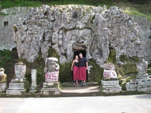 When we are settled a man, no a boy, comes to see us. He asks a question we have heard many times in Bali: “Tea or Coffee” we assume this is for breakfast the next day (breakfast is always included) and answer coffee. Soon, as we are getting ready to go i the boy returns with the coffee on our patio. So we sit as he pours the coffee. And then the boy sits. We are to tell him what things we plan to do here. His friends will show us everything. This we gather, although the boy only speaks roughly 50 words of English. Milk is not one of them (despite many attempts and even a series of hand jesters imitating milking a cow- I was not successful). I drank my coffee black. The boy’s name is Ketut, and he says he is 18 years old, but I can’t believe he is a day over 15. He is shy as he shows us on the map the places we want to go. We tell him we only need a driver for the elephant cave – and we will stay in town for the rest of our time.