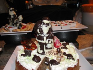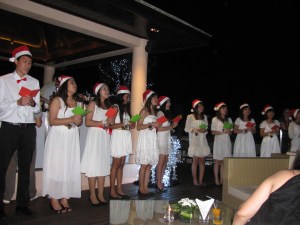The strange thing about the Westin is the price difference for food. Phuket Town is 8 minutes away. We had lunch on Christmas eve for 50 cents each. Our Christmas Eve Buffet Dinner cost us $50 a person. But it did come complete with Carolers and Chocolate Santas, so there is something to be said for that. 🙂